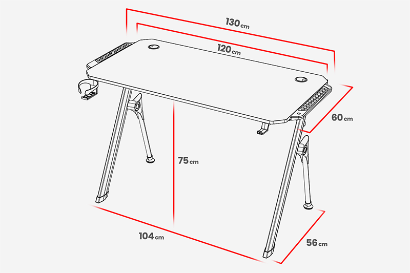 - Support pour accessoires : Ce bureau inclut un support pour casque et un emplacement pour boissons, pratiques pour garder vos accessoires à portée de main.