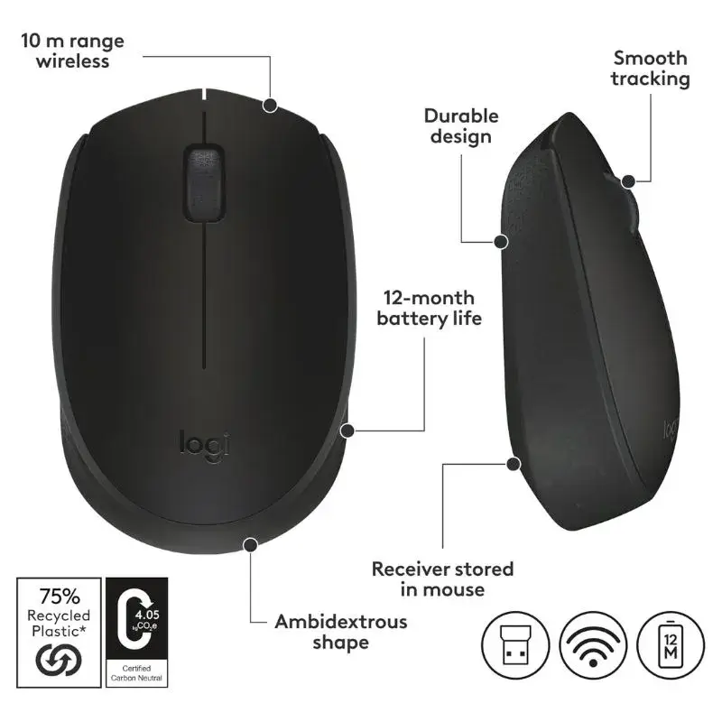 Logitech M170 Wireless Mouse – Gris
