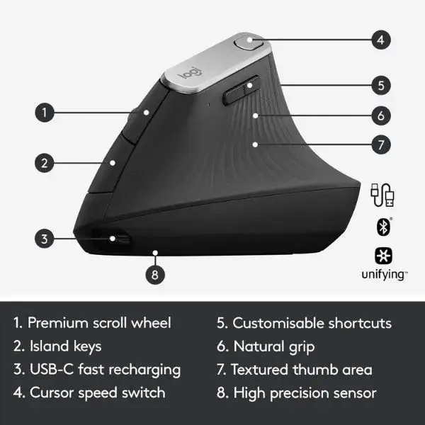 - Connectivité : Bluetooth ou récepteur USB Logitech Unifying