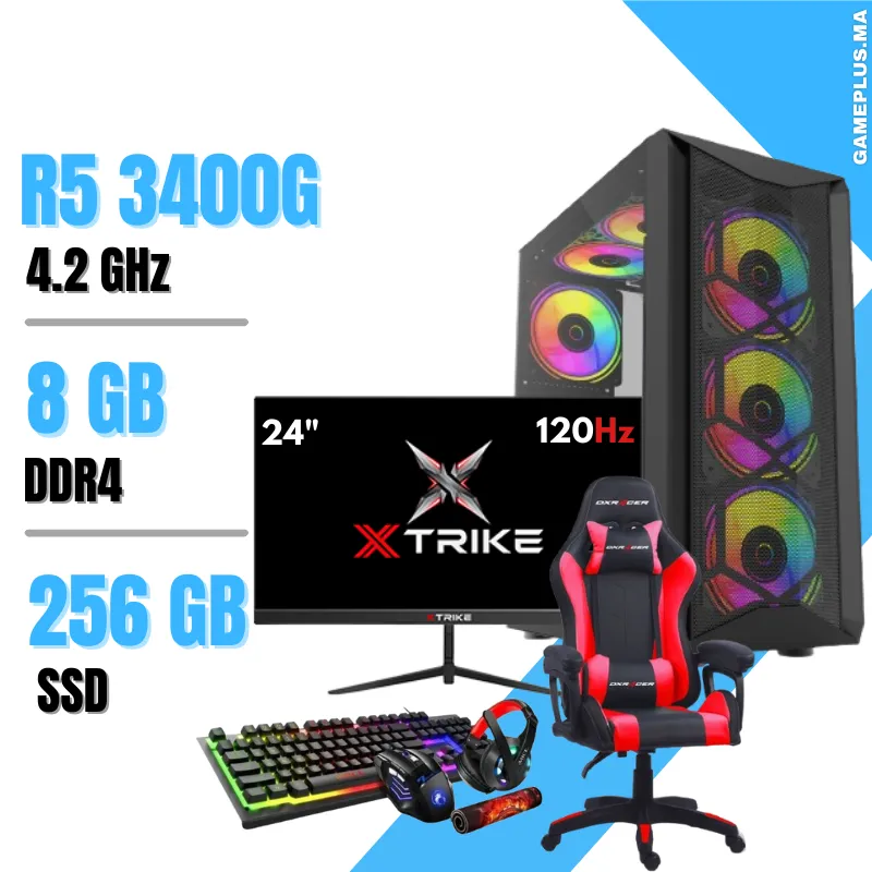 Setup Complet PC Gamer Ryzen 5 3400G / 8 GB / 256GB SSD + Chaise Gamer