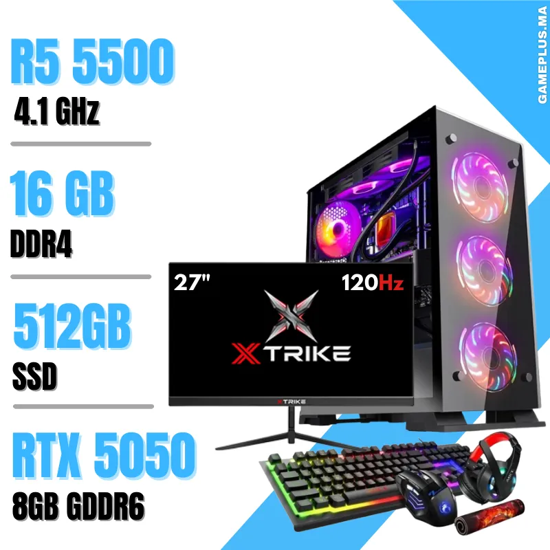 Setup Complet PC Gamer Ryzen 5 5500 / 16GB / 512GB SSD / RTX 5050 8Gb