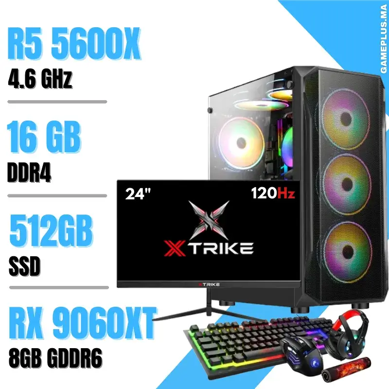Setup Complet PC Gamer Ryzen 5 5600X / 16GB / 512GB SSD / RX 9060XT